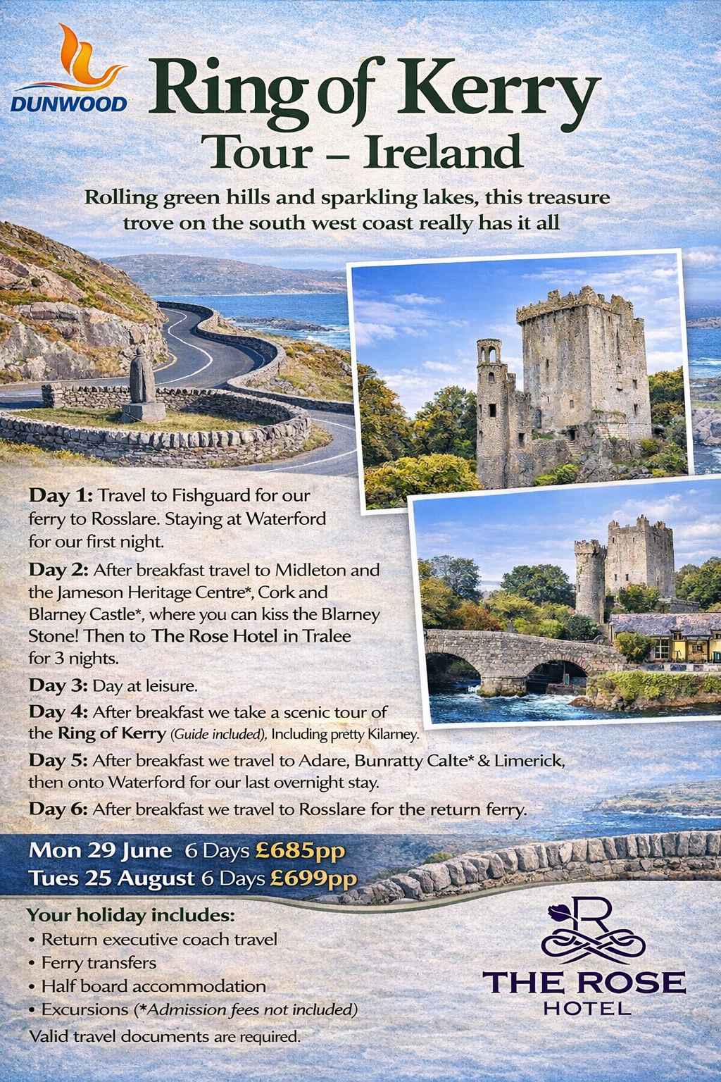 Ring of Kerry 2026! Please see attached Ireland tours and full itienrary. For further details call 01384 455655.